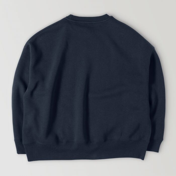 広めの身幅とドロップショルダーで、ゆったりとしたシルエットのスウェットです。